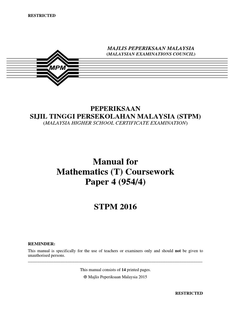 Manual For Mathematics T Coursework Paper 4 954 4 Stpm 2016 Pdf Equations Mathematical Analysis